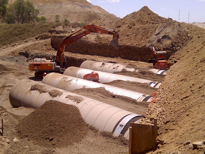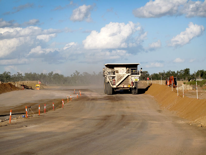 This haul road is the main supply and output route for the mine, used by ultra-class trucks.