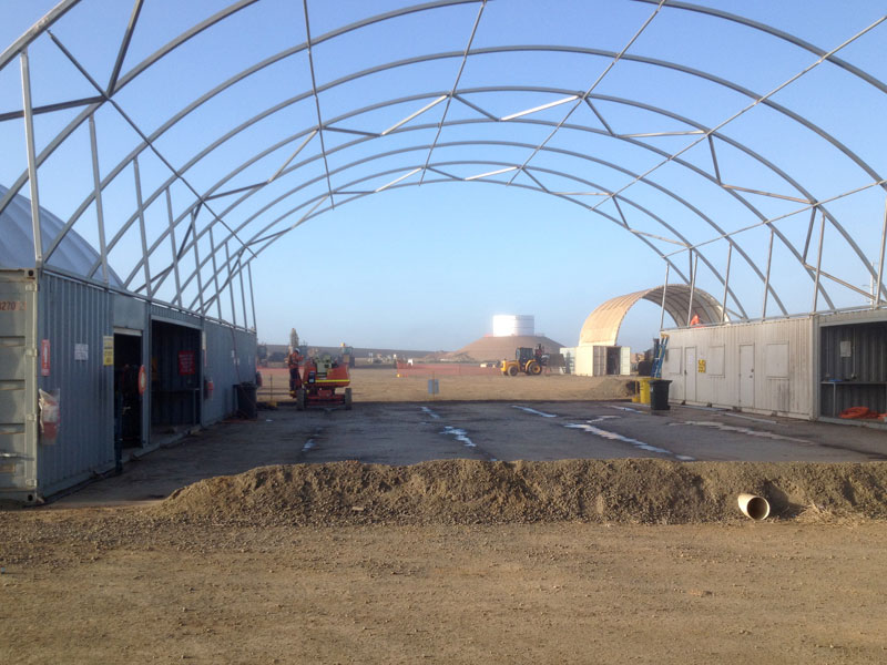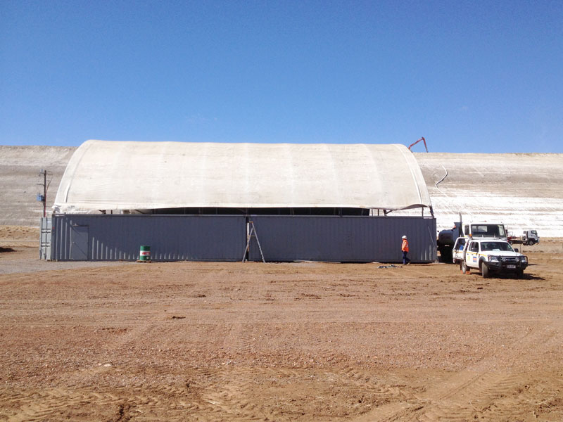 In the remote mining area 150 km from Mount Isa, Hawkins Group installed a dome shelter to cover 26 metre containers.